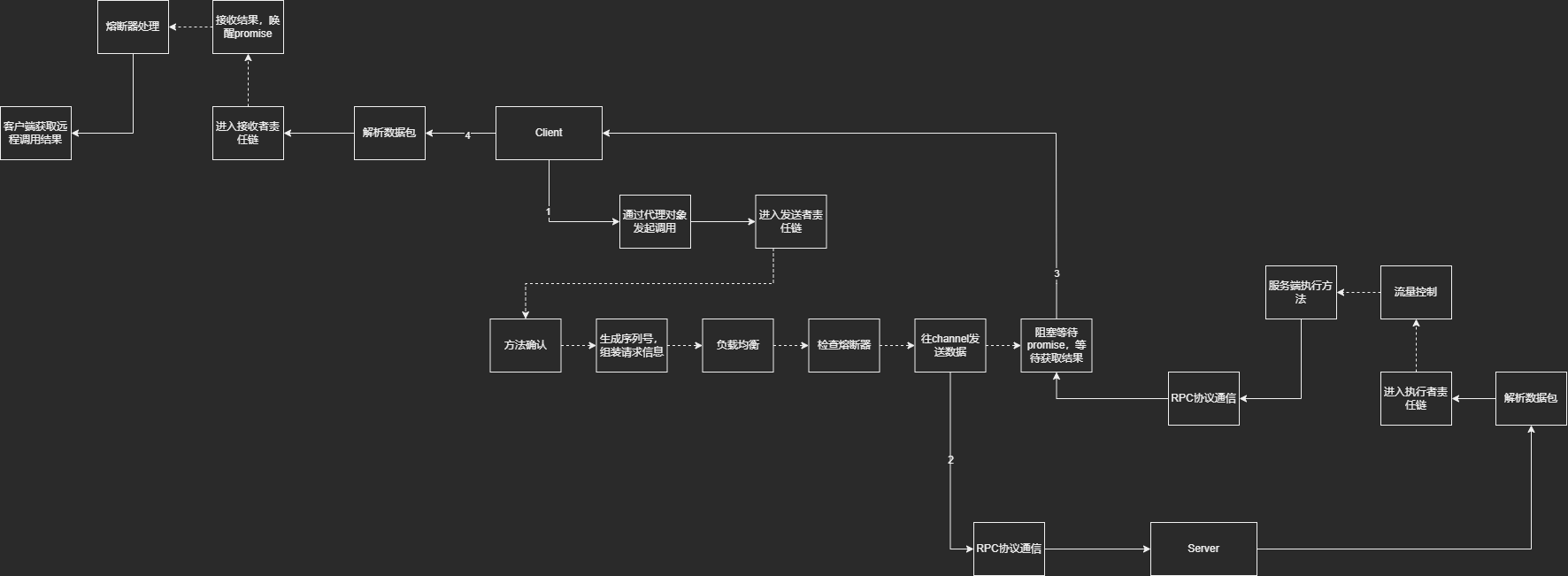 每一个RPCCaller都是一个代理对象,代理模式为jdk动态代理。将调用的方法,参数传入发送责任链,后续逻辑在发送责任链中进行