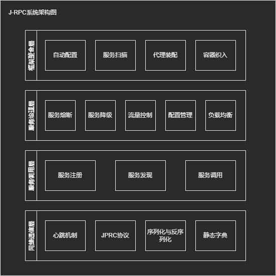 JRPC是一个轻量级的基于Netty实现的微服务治理框架,在实现远程调用的基础之上,加入了服务发现,配置管理,负载均衡,熔断降级,流量限制等服务治理功能;JRPC框架提供了SpringBoot-Starter,整合了SpringBoot框架,并提供了相应的注解进行服务注册、服务引用、定义相关配置等;使用了策略模式、责任链模式等设计模式使代码具有强扩展性