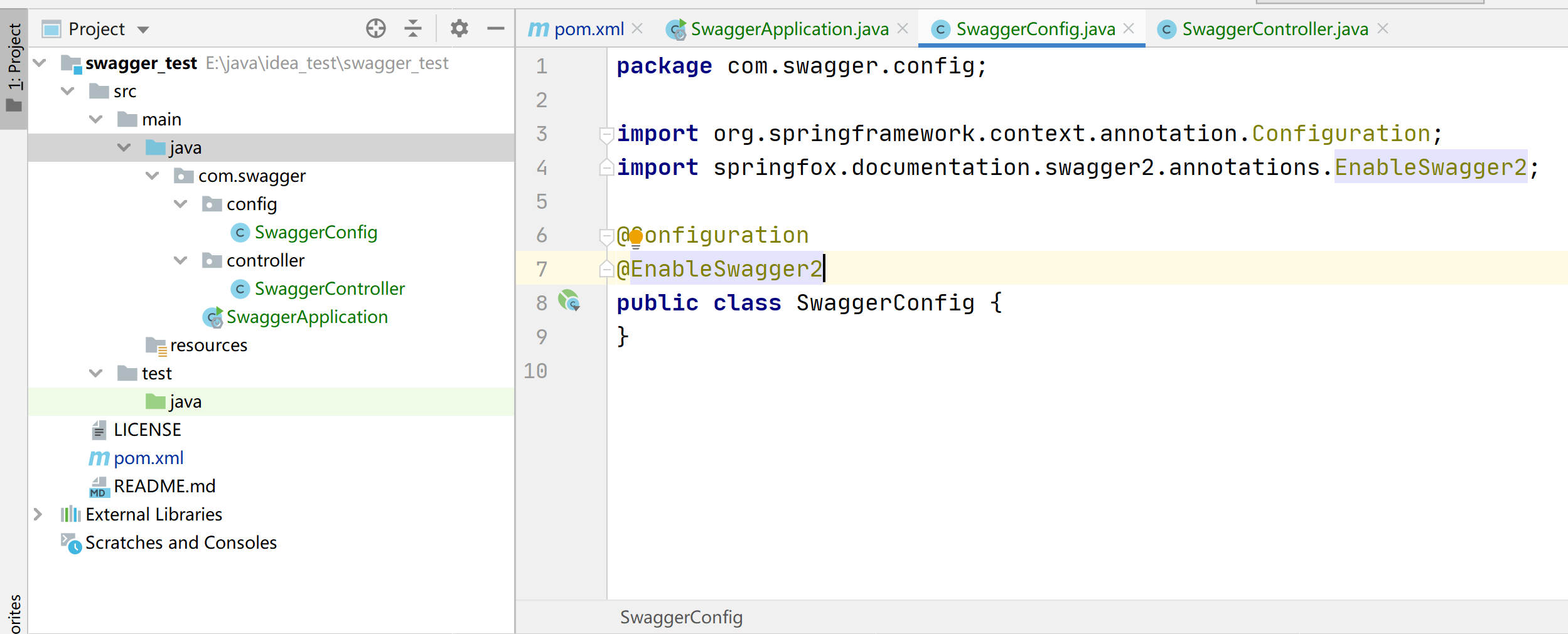 @EnableSwagger2 // 开启 swagger2