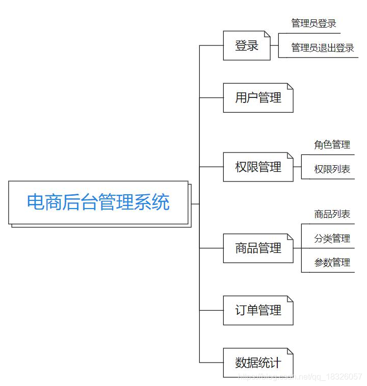 电商后台管理系统整体采用**前后端分离**的开发模式,其中前端项目是基于Vue技术栈的SPA项目。