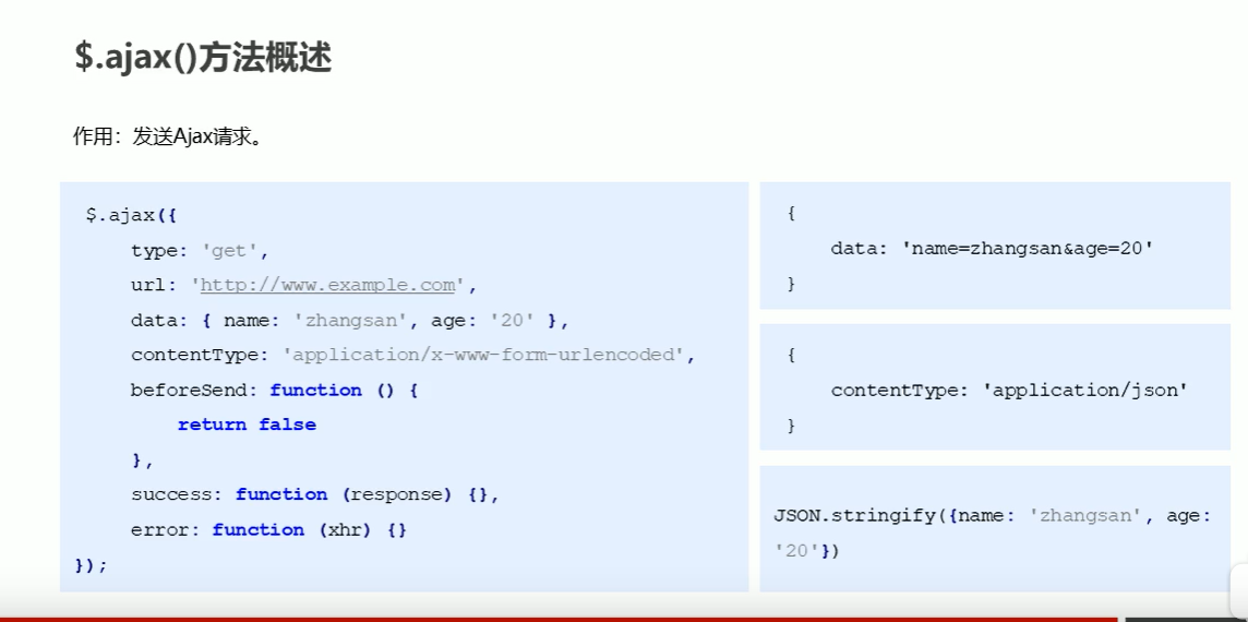 1. type是get或者post,data可以是对象或者连接好的字符串